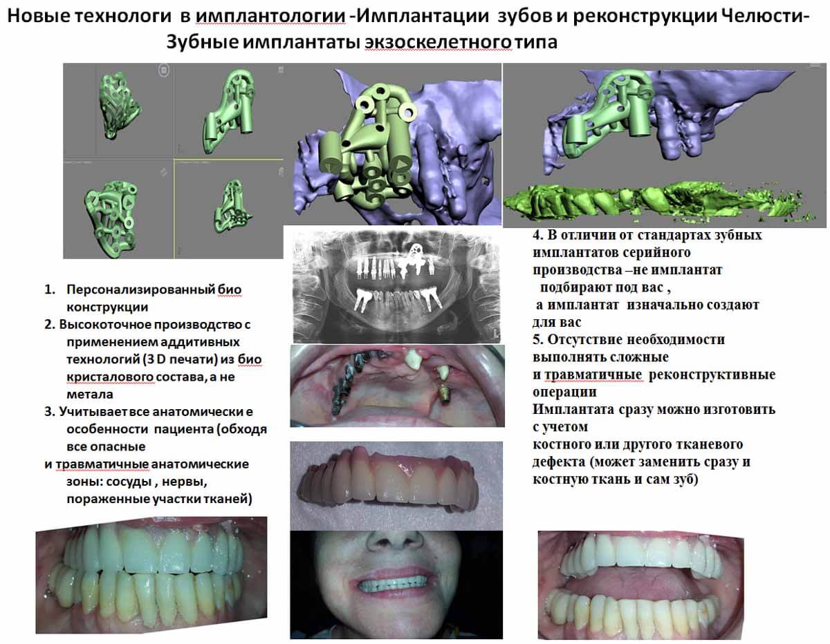 Принцип заключен в создании точной копии поверхности кости верхней и нижней челюсти. По этой копии будет моделироваться будущий экзоскелет с посадочными местами под искусственные зубы. Конструкция дополнительно крепится к кости фиксационными элементами.
