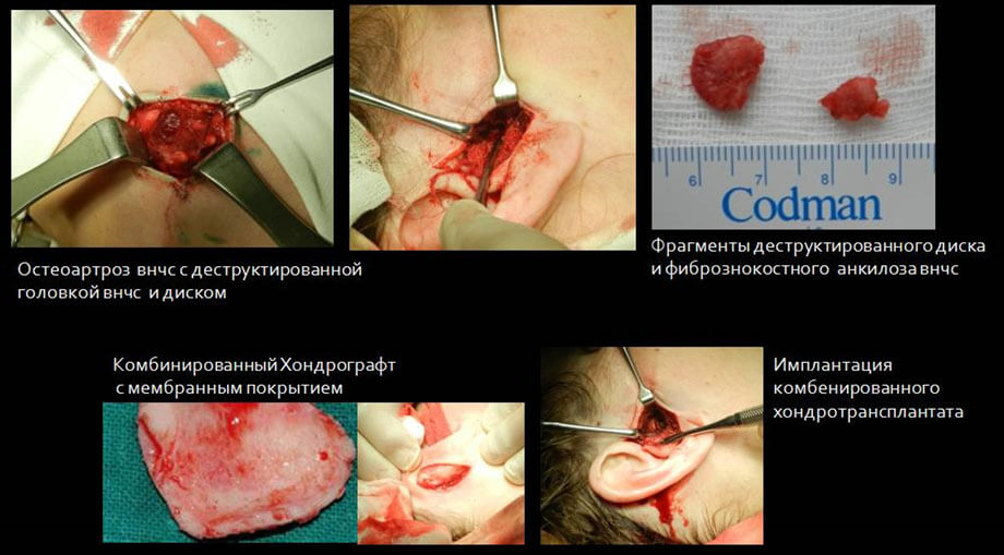 Проведение полной замена диска ВНЧС и суставных поверхностей