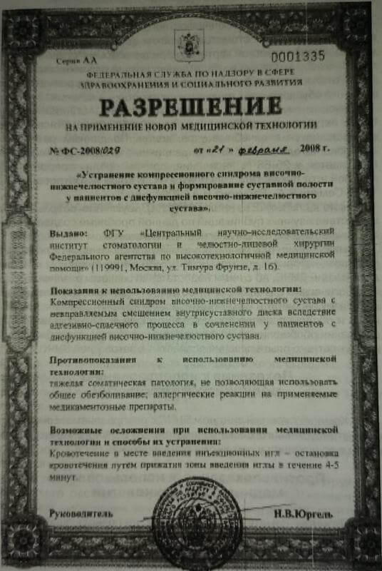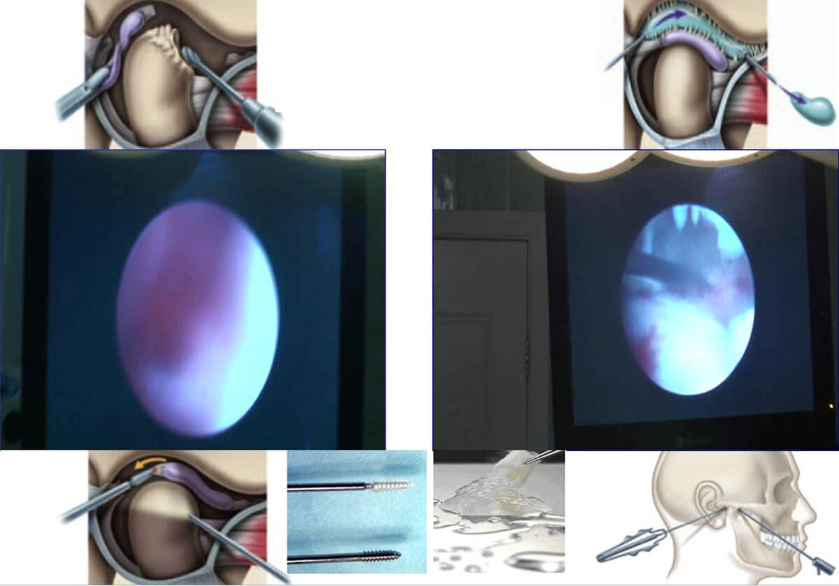 • Устранение внутрисуставных спаек, репозиция – вправление диска и его фиксация –фиксирующими имплантатами и имплантацией задней связки (процедура проводится закрытым способом под местной анестезией с дополнительной седацией) – уникальность процедуры заключается в возможности избежать перепротезирования!
